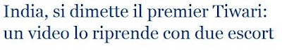 Uno scandalo a sfondo sessuale, con tanto di foto e video proposti da una tv locale, ha investito l'anziano premier dello Stato indiano dell'Andhra Pradesh, Narayan Dutt Tiwari. Narayan Dutt Tiwari, governatore dello stato indiano dell'Andra Pradesh, si è dimesso in seguito alle rivelazioni su uno scandalo sessuale che lo ha visto protagonista. ..lo scandalo è scoppiato ieri sera..Fonte: L'unione sarda
